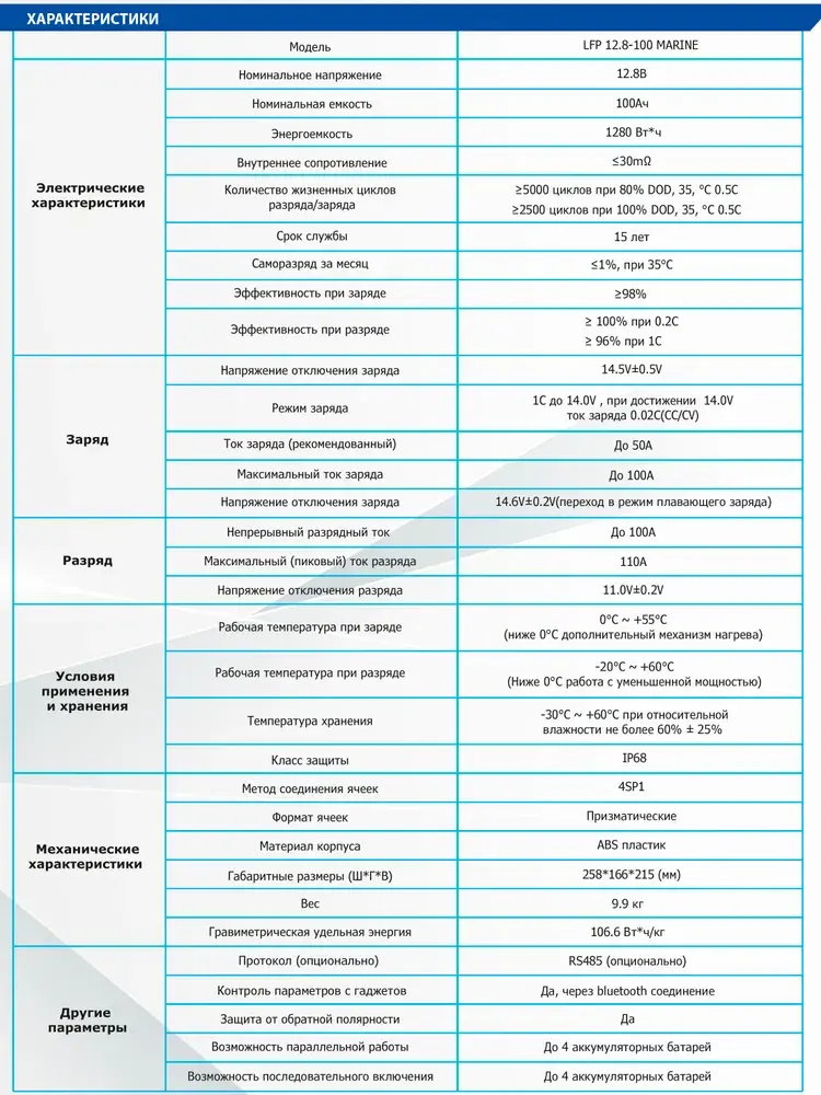 - Превосходная безопасность: Химия лития — фосфата железа исключает риск взрыва или сгорания из-за сильного удара, чрезмерного заряда или короткого замыкания. Металлический корпус ячеек гарантирует высокую прочность.