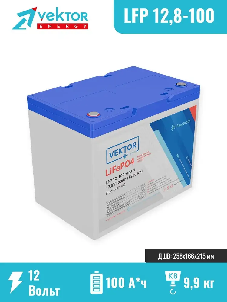 Представляем новую Литий-ионную (LiFePO4) аккумуляторную батарею от Vektor Energy! Срок службы этой батареи составляет целых 15 лет, что является невероятным показателем. Благодаря встроенному bluetooth 4.0 вы сможете мониторить её работу и контролировать заряд через специальное приложение на вашем устройстве.