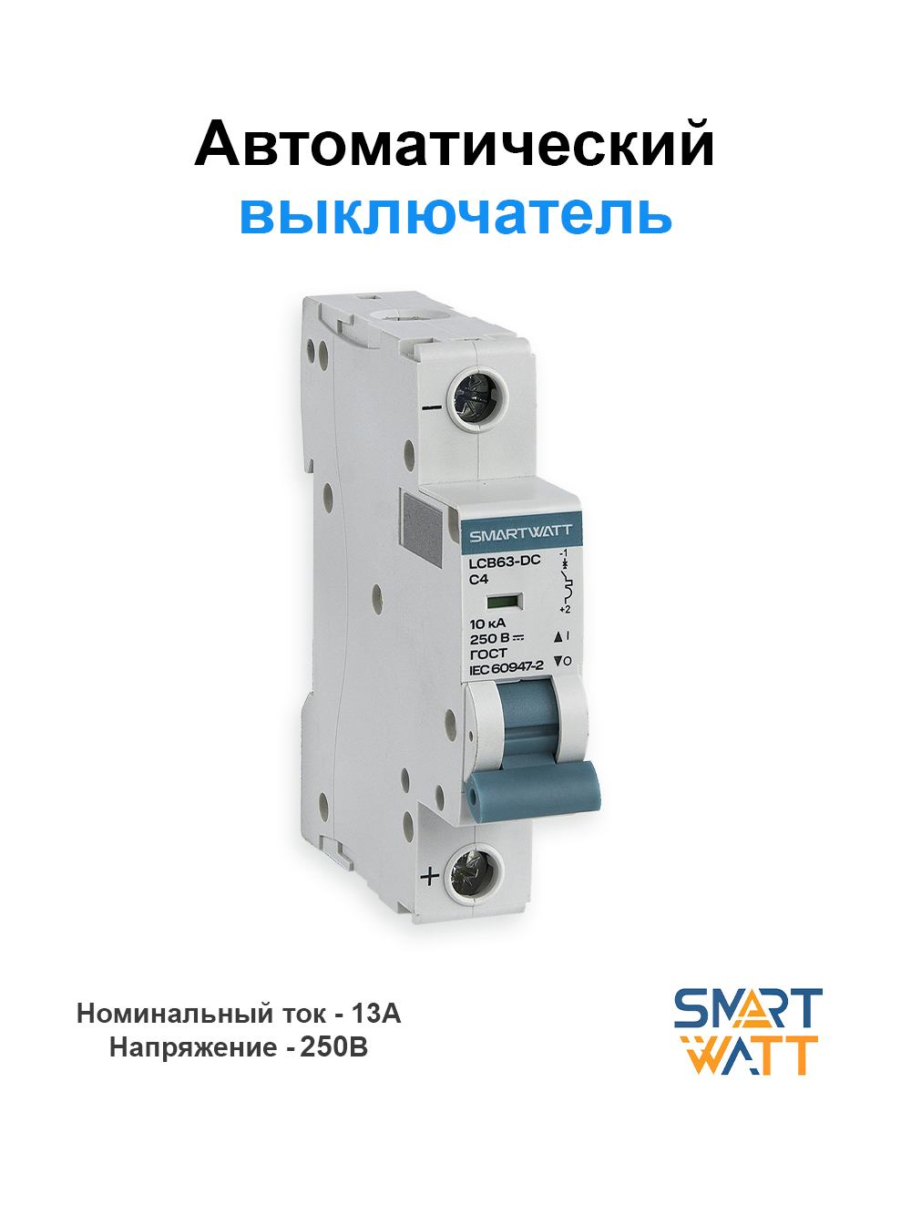Автоматический выключатель постоянного тока SMARTWATT 250В, 13А 1П