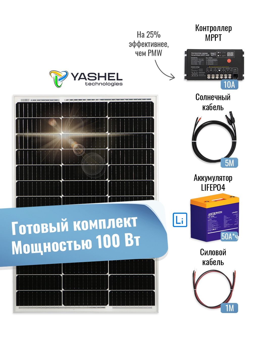 Автономная солнечная электростанция Yashel - надежный и экологически безопасный источник электроэнергии. Благодаря новым фотоэлементам, солнечная батарея Yashel 100 обеспечивает стабильную выработку при компактных размерах.