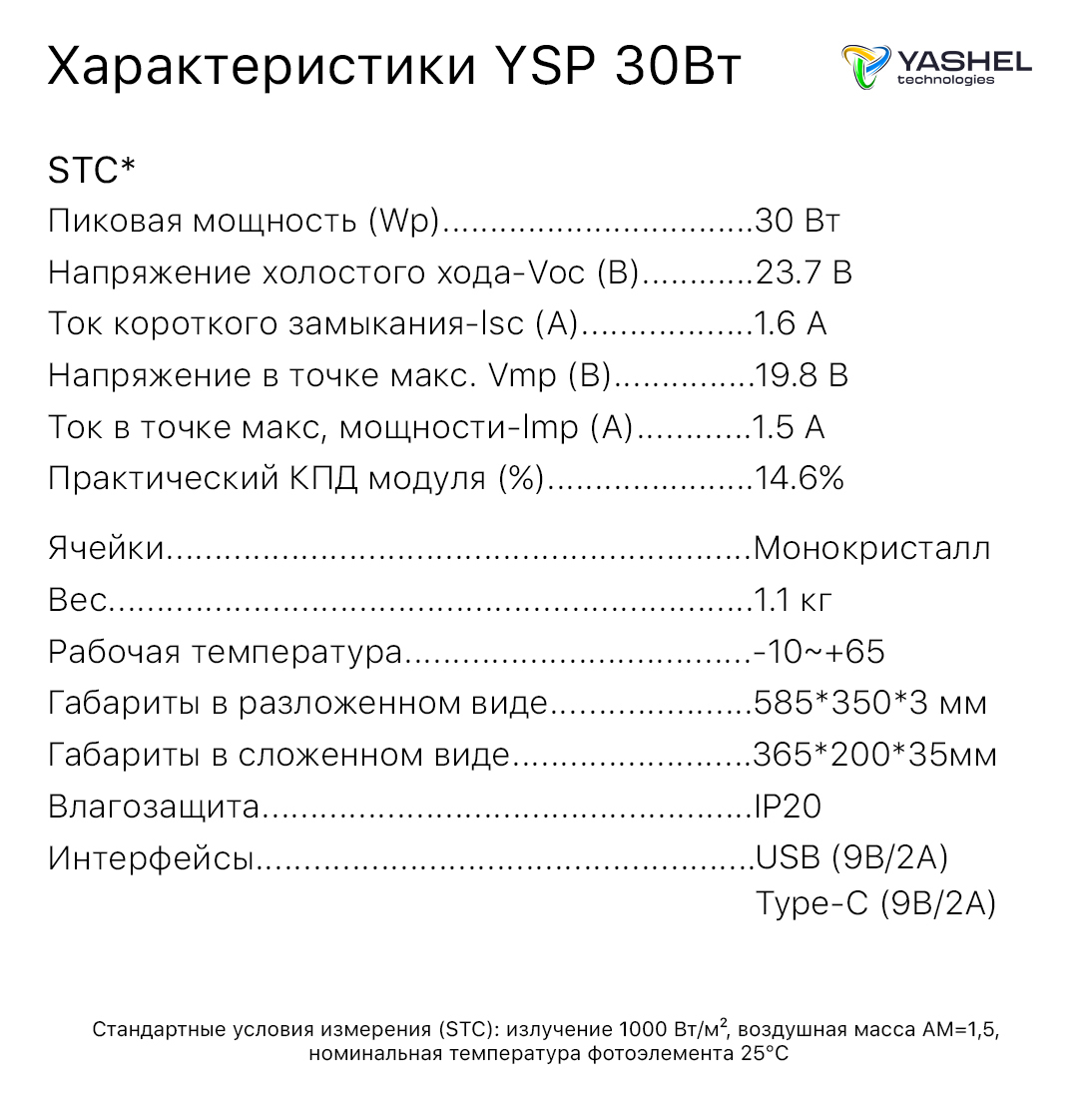 Максимальная фотоэлектрическая мощность: 30 Вт