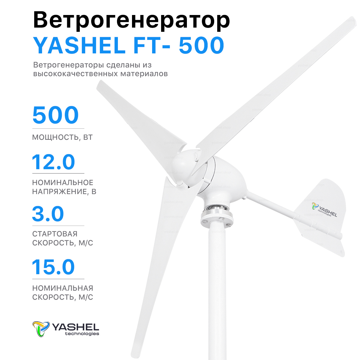• Ветрогенератор 500Вт дает выработку экологически чистой и бесплатной электроэнергии как минимум 10-15 лет.